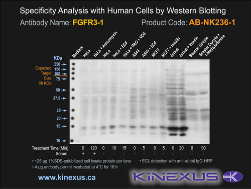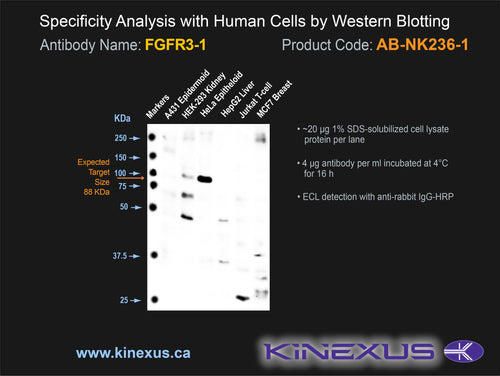 Antibody Cross Reactivity: No immunoreactivity on protein dot blots with recombinant human FGFR1, FGFR2 and FGFR4.