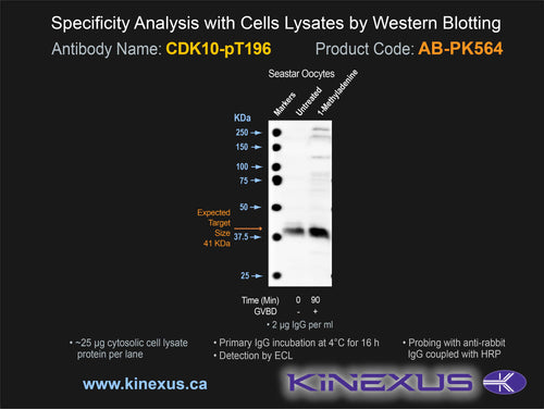 Antibody Cross Reactivity: Exhibited a high background in sea star oocytes, and detected proteins that also cross-reacted with generic phosphotyrosine antibodies in this system.