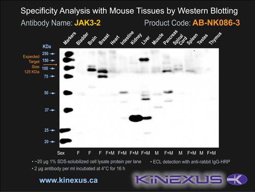 Antibody Cross Reactivity: No cross-reactivities detected in mouse brain, skeletal muscle, testes and thymus, or in various human cancer cell lines, including A431, HEK-293, HeLa, HepG2, Jurkat and MCF7 cells.