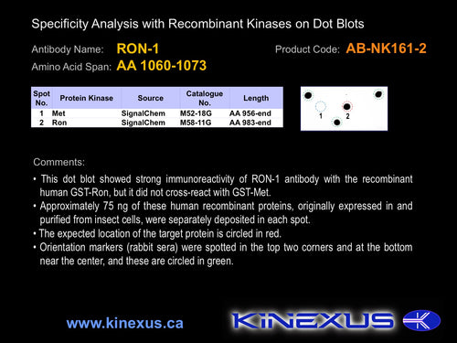 Antibody Potency: Medium-strong immunoreactivity with recombinant human Ron on protein dot blots.