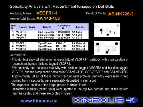 Antibody Potency: Very strong immunoreactivity with recombinant human VEGFR1 on protein dot blots.