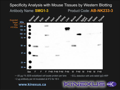 Antibody Immunogen Source: Human SMG1 sequence peptide Cat. No.: PE-01ATI75