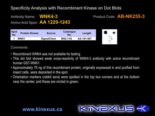 Antibody Cross Reactivity: No immunoreactivity on protein dot blots with recombinant human WNK1.