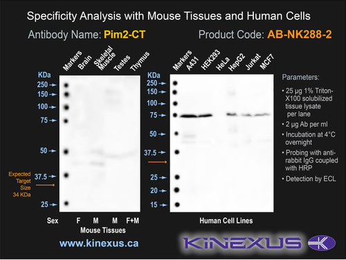 Antibody Cross Reactivity: No significant cross-reactivities detected in various human cancer cell lines, including A431, HEK-293, HeLa, HepG2, Jurkat and MCF7 cells, except for a very strong 75 kDa protein. No significant cross-reactive proteins detected in diverse mouse tissues.