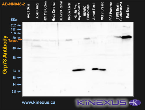 Antibody Potency: Very high potency. Detects a protein with a mass of ~78 kDa corresponding to Grp78 in cell and tissue lysates by Western blotting.