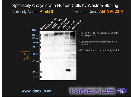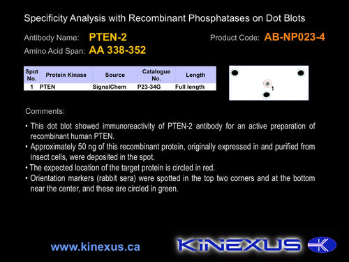 Antibody Potency: Very strong immunoreactivity with recombinant human PTEN on protein dot blots.