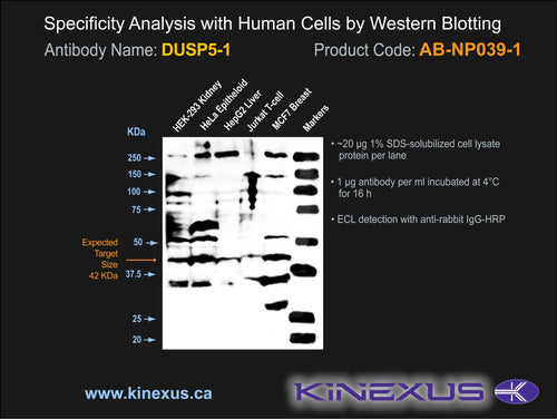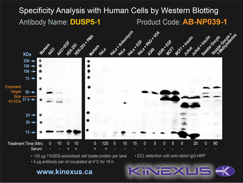 Scientific Background: DUSP5 (VH3) is a dual specificity phosphatase that dephosphorylates MAP kinase ERK1 (and ERK2) on both 'T202' and 'Y204', and inhibits its activity during mitosis following initial growth factor activation.