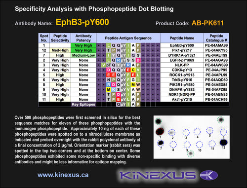 Antibody Potency: Very strong immunoreactivity with immunogen peptide on dot blots.
