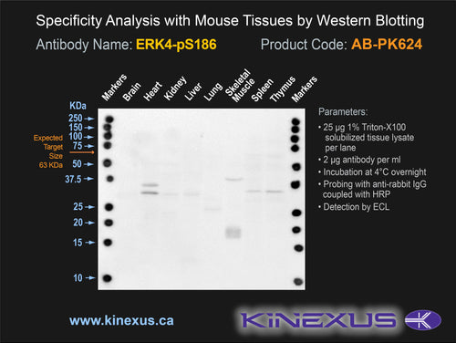Scientific Background: ERK4 (MAPK4) is a protein-serine/threonine kinase of the CMGC group and MAPK family. It functions to phosphorylate microtubule-associated protein 2 (MAP2) and MAPKAPK5, which may have a role in promoting the entrance of cells into the cell cycle. ERK3 and ERK4 share high sequence homology and are hypothesized to be paralogues. In animal studies, mice lacking ERK3 show a phenotype that closely resembles human pulmonary immaturity, along with reduced fetal growth potential and significantly lower neonatal survival rates. Additional loss of ERK4 in mice lacking ERK3 does not result in the worsening of symptoms of either the neonatal growth deficiency or the pulmonary immaturity phenotype, indicating that ERK4 is dispensible for mouse embryonic development with regards to pulmonary immaturity and growth potential. Therefore, reduced ERK4 protein expression may contribute to the pathogenesis of pulmonary immaturity, potentially due to a reduced entrance of cells into the cell cycle during pulmonary development.