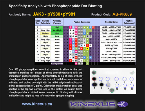 Antibody Potency: Very strong immunoreactivity with immunogen peptide on dot blots. Medium-strong immunoreactivity with recombinant human JNK1 on protein dot blots.
