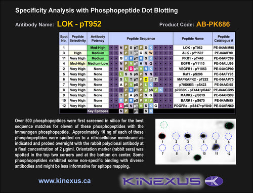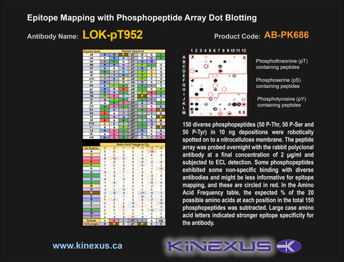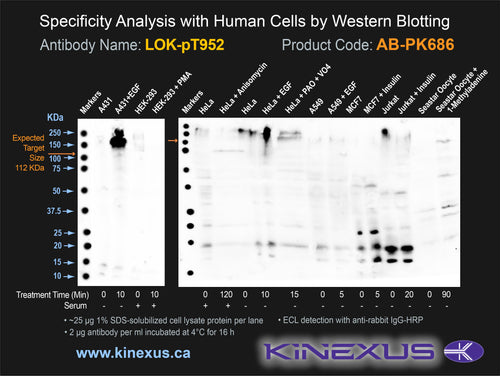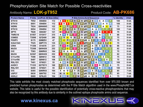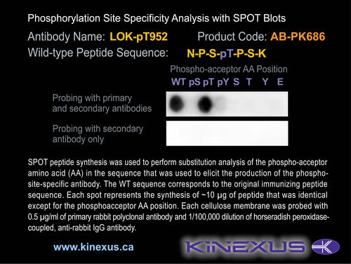 Antibody Immunogen Description: Corresponds to amino acid residues N949 to K955; In the C-terminus of the kinase. This is the major in vivo site of phosphorylation in LOK.
