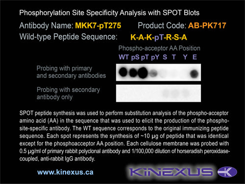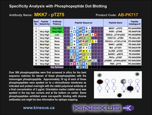 Antibody Potency: Very strong immunoreactivity with immunogen peptide on dot blots. Medium immunoreactivity with recombinant human MKK7 on protein dot blots.