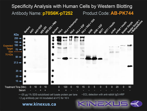 Related Product 3: p70S6K-pT444+pS447 phosphosite-specific antibody (Cat. No.: AB-PK746)
