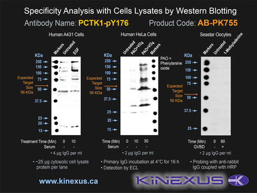 Antibody Immunogen Description: Corresponds to amino acid residues E173 to V179; In the protein kinase catalytic domain in subdomain I. This is the major in vivo phosphorylation site in PCTK1.