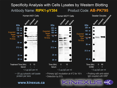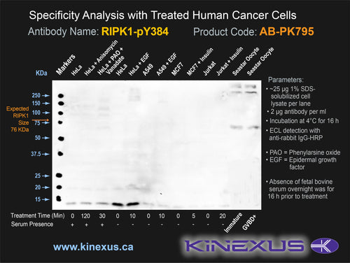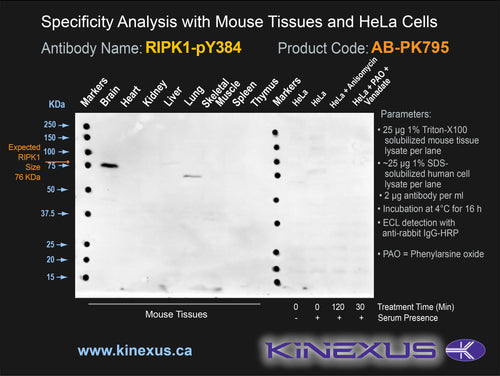 Antibody Immunogen Description: Corresponds to amino acid residues E381 to Y387; In the region between the kinase catalytic and RHIM domains. This is a major in vivo phosphorylation site in RIPK1.