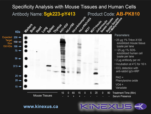 Antibody Immunogen Description: Corresponds to amino acid residues E410 to S416; In the first third of the protein. This is the major in vivo site for phosphorylation of Sgk223.