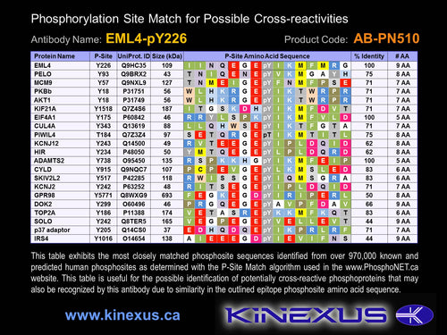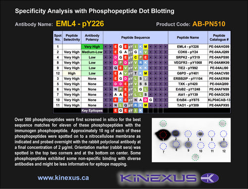 Antibody Immunogen Description: Corresponds to amino acid residues E223 to M229; In the N-terminal portion of EML4 near the HELP domain. This is the major in vivo phosphorylation site in EML4.