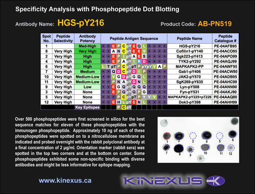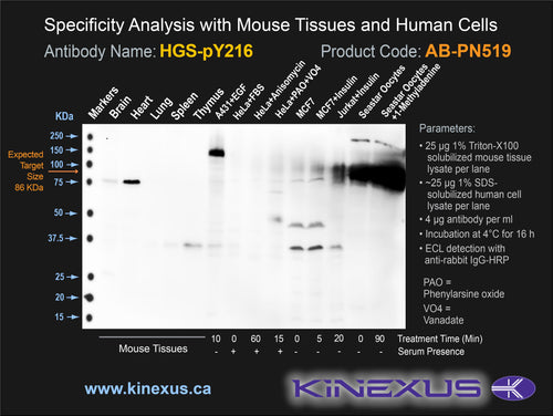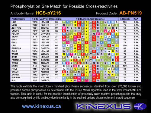 Antibody Immunogen Description: Corresponds to amino acid residues E213 to L219; In the FYVE domain. This is the major in vivo phosphorylation site in HGS.