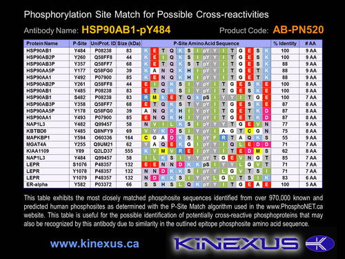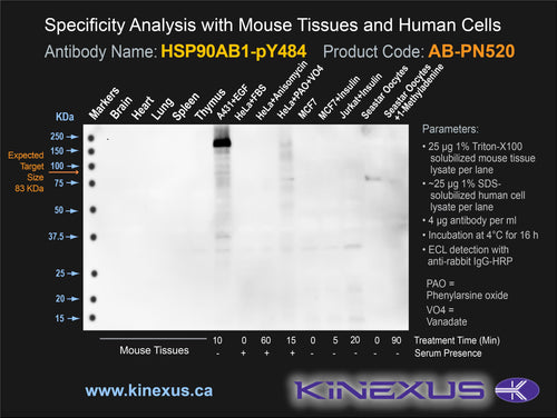 Antibody Immunogen Description: Corresponds to amino acid residues K481 to T487; In the middle of the HSP90 domain. This is the major in vivo phosphorylation site in HSP90AB1.