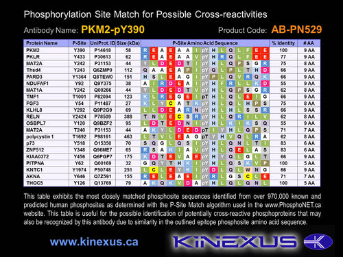 Antibody Immunogen Description: Corresponds to amino acid residues A387 to Q393; At the end of the PK domain. A major phosphorylation site in PKM2.